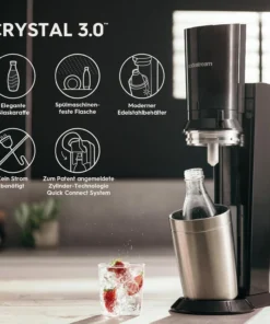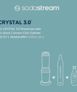 Der SodaStream Crystal 3.0 ist ein hochwertiger Sprudelwasserbereiter, der mit einer CO₂-Flasche und einer Glaskaraffe ausgestattet ist, um sprudelndes Wasser mit einem eleganten Design zu Hause zu genießen. Der gasbetriebene SodaStream Crystal 3.0 ist die perfekte Lösung für alle, die Sprudelwasser schnell und einfach herstellen möchten, und das mit einem stilvollen Gerät.