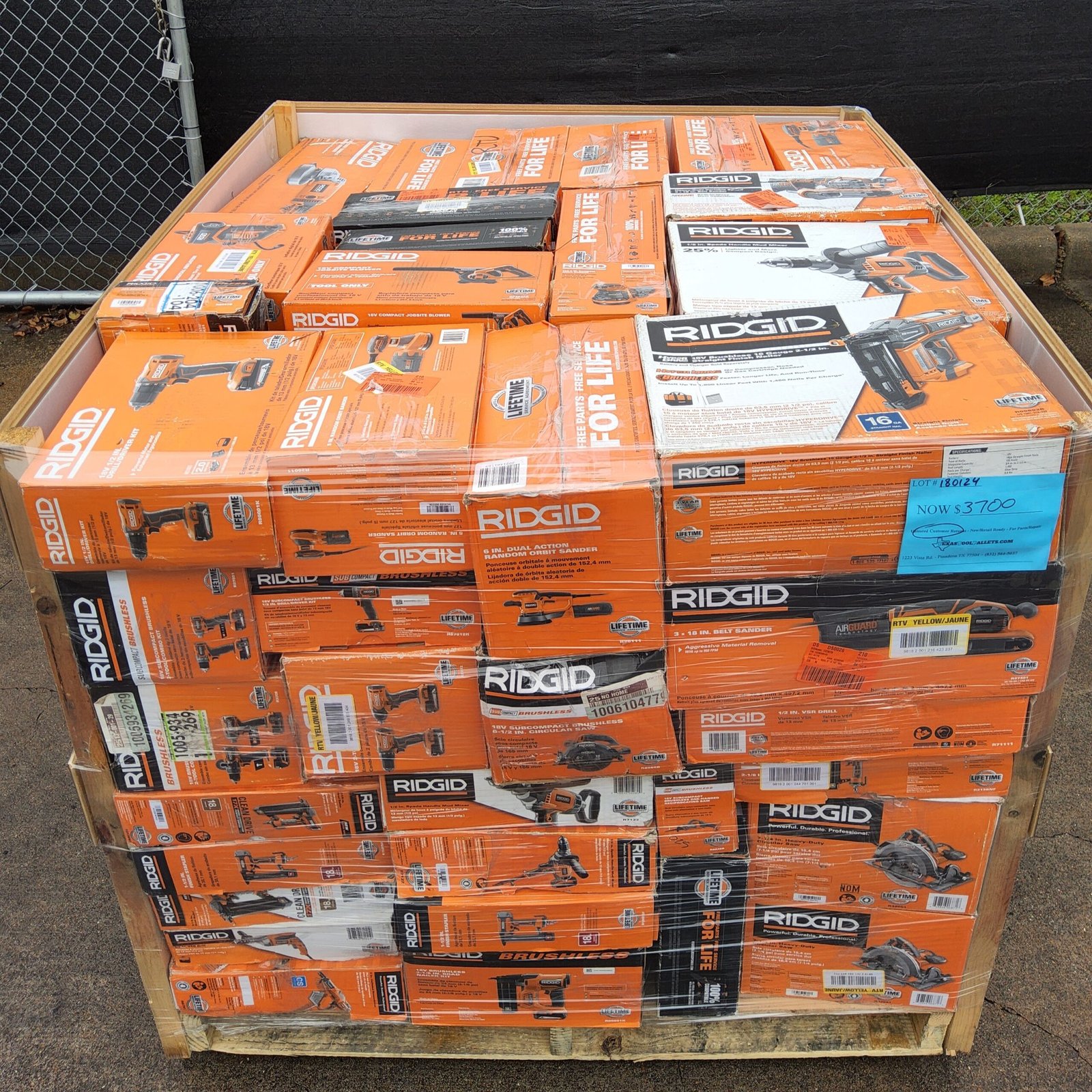 Eine Vollpalette enthält 85 brandneue RIDGID Werkzeuge, eine Halbpalette 45 und eine Mini-Palette 25 Stück.